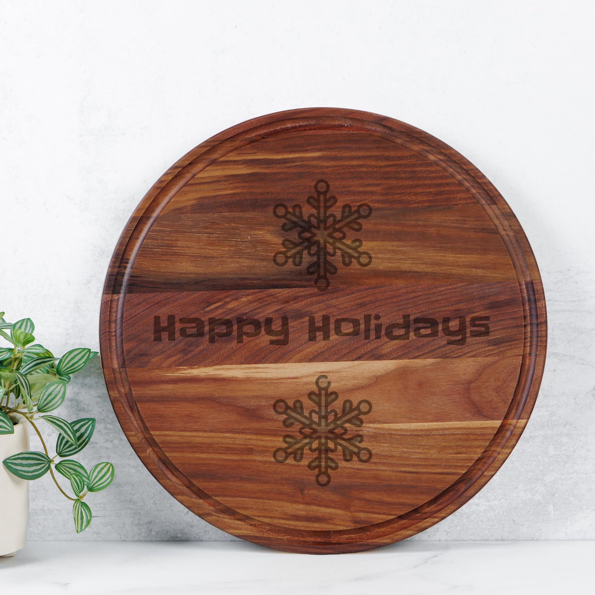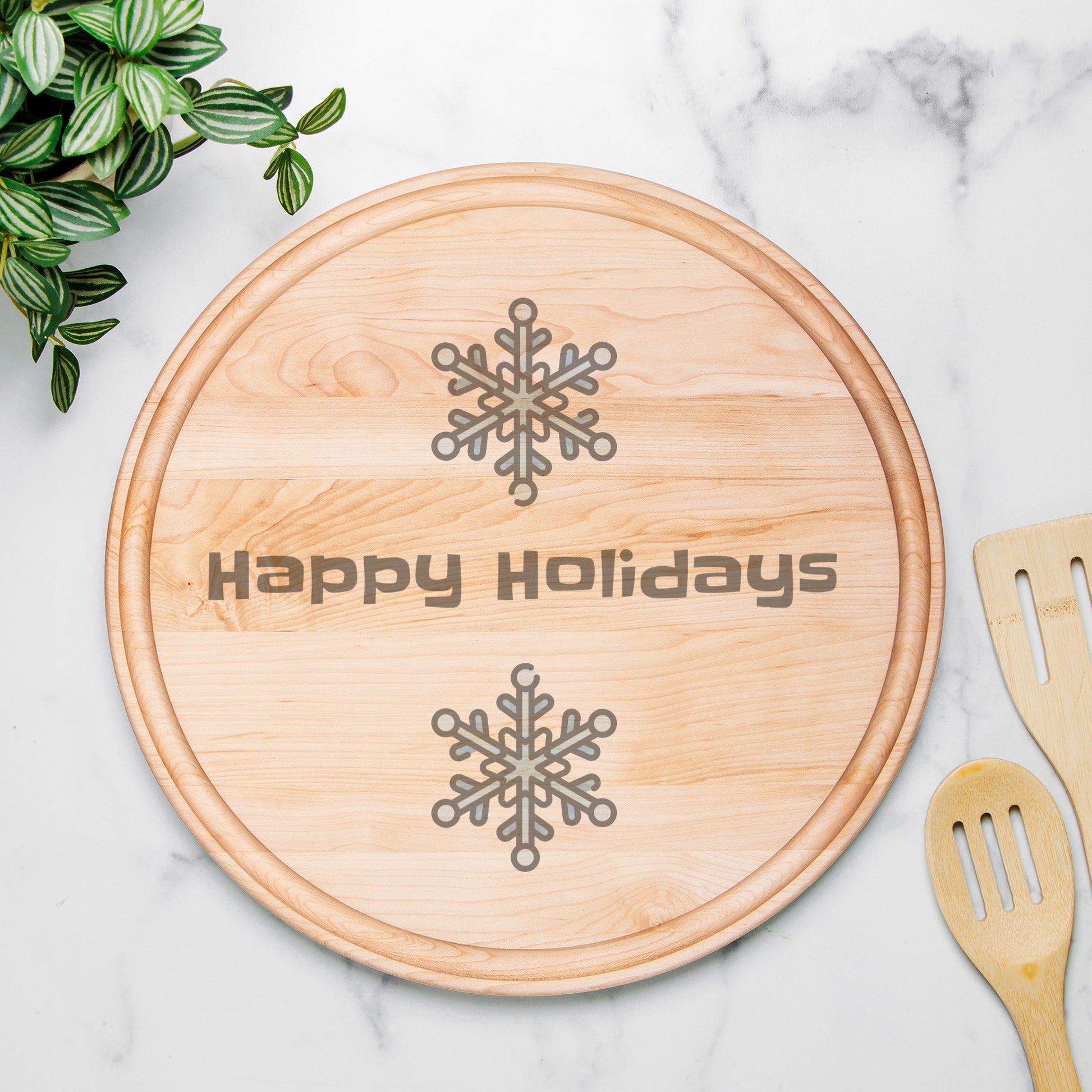 Happy Holidays - Round Charcuterie Board with Groove - 13.5” x 13.5”