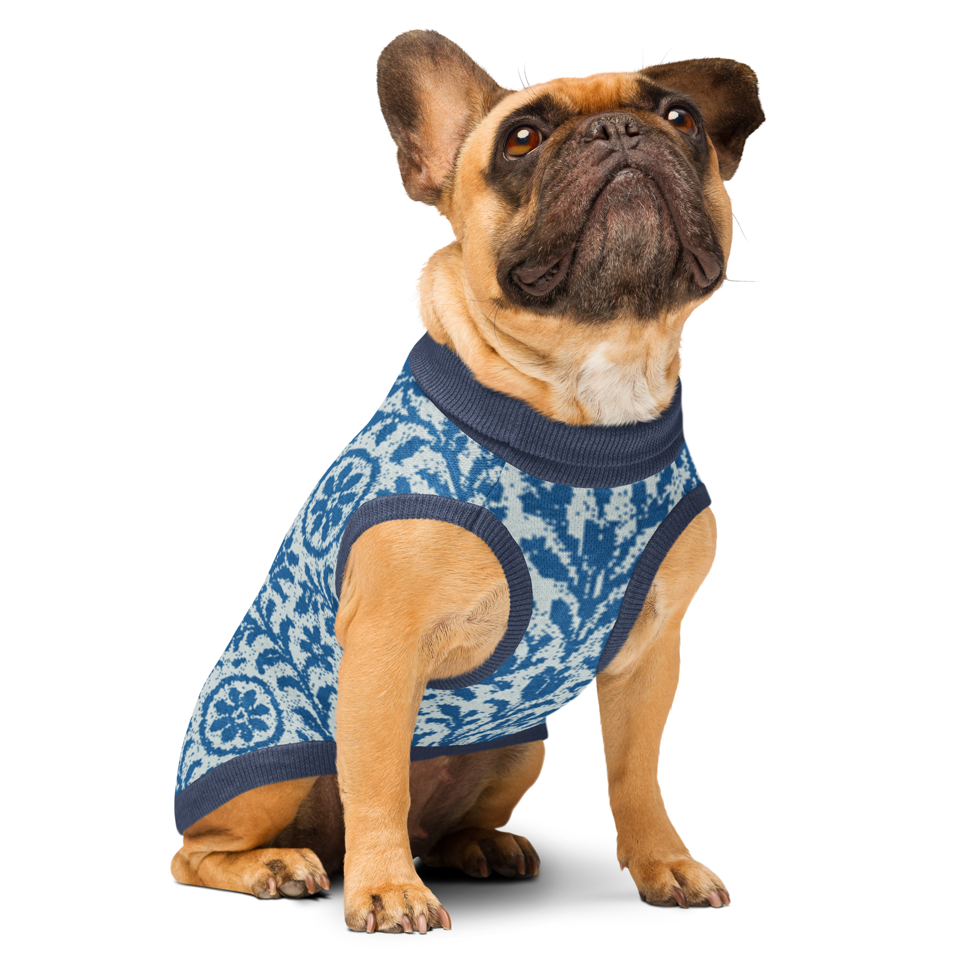 Keep your furry friend warm and adorable with this soft, knitted sweater. Designed for comfort and cuteness, it’s perfect for chilly walks, cozy naps, or seasonal photo ops. Made with a soft cotton-blend knit, it has a snug and comfy fit. Coordinates well with our made for human Delft Sweater, beanie and sneakers. The dog insisted!