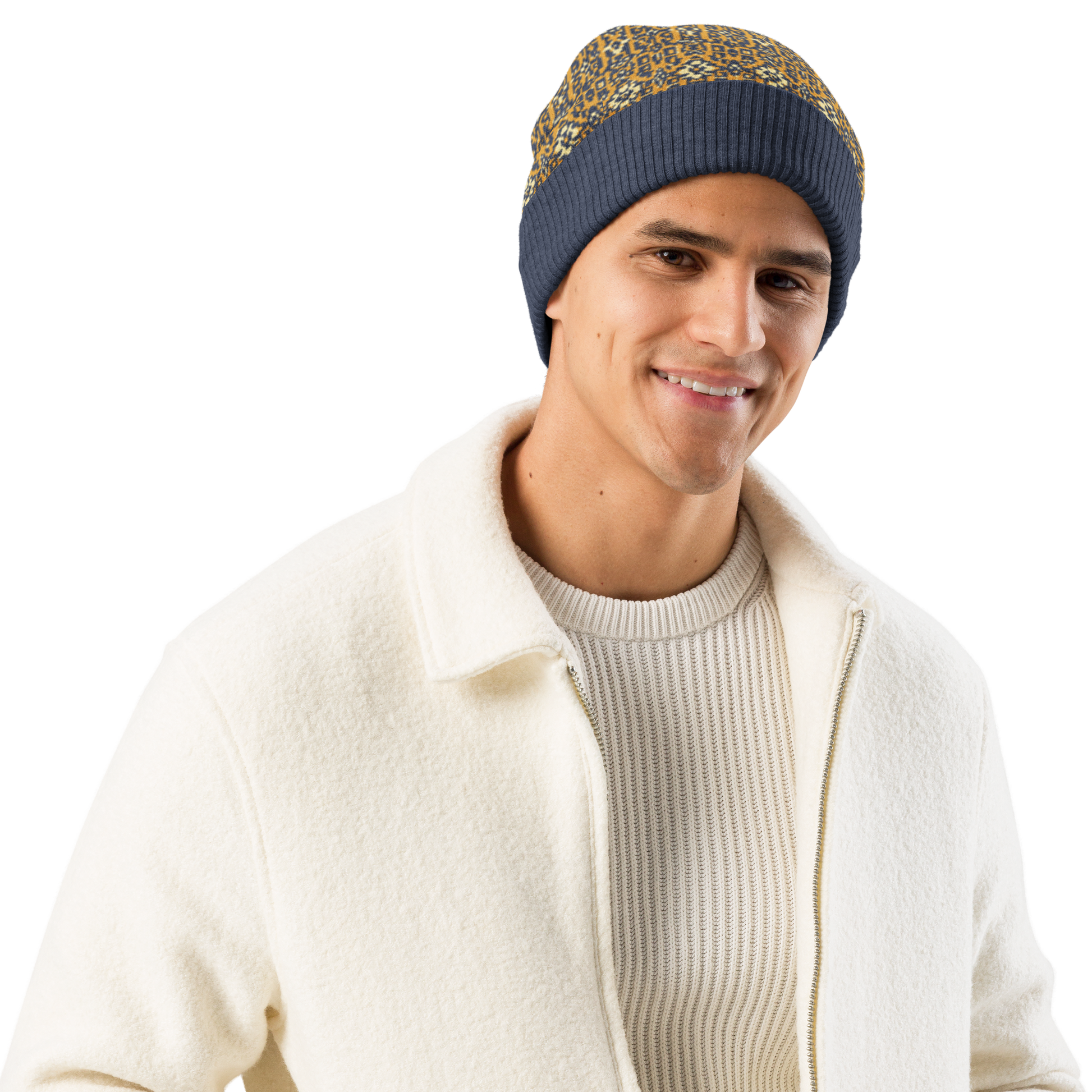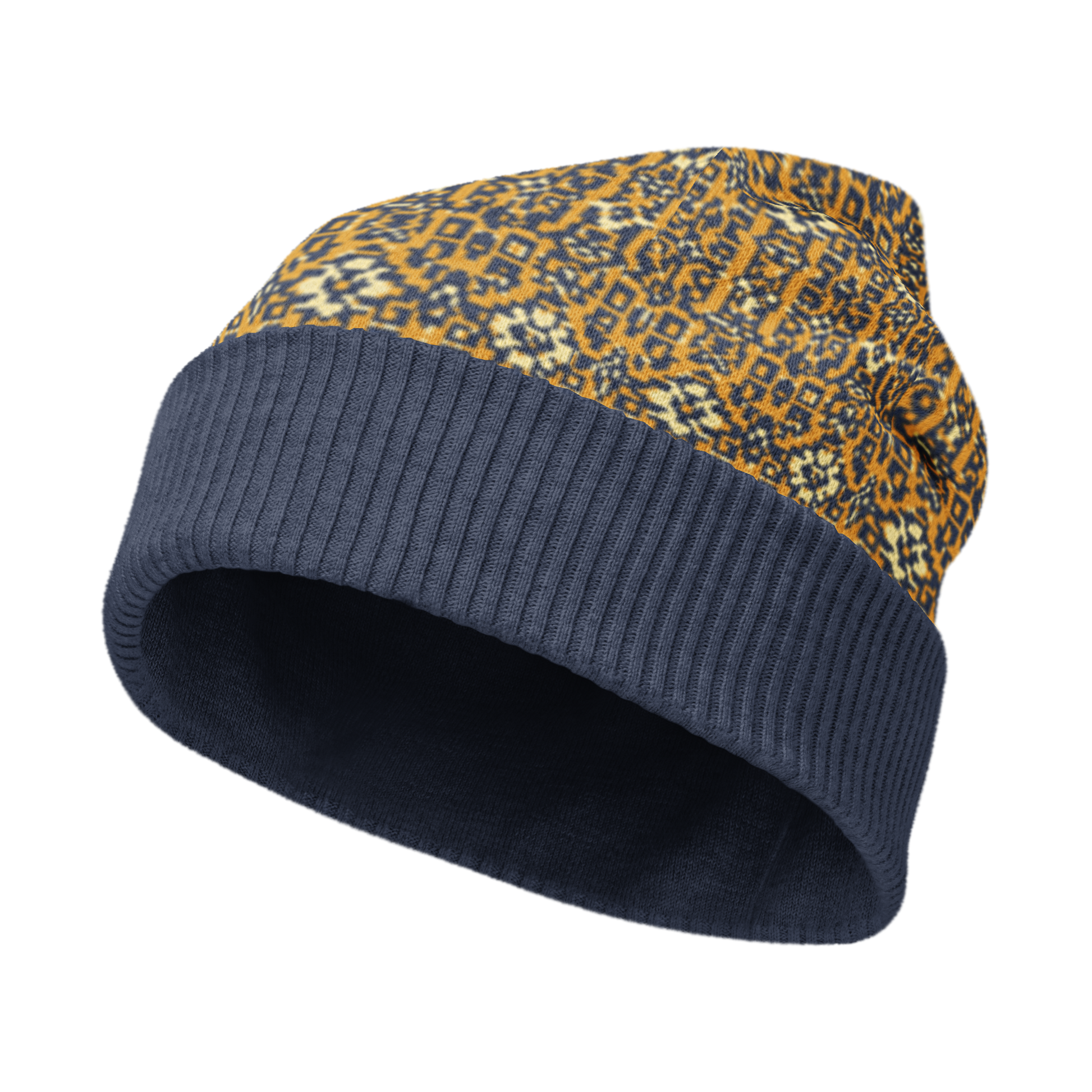 Made with an intricate jacquard knit, the design has depth and texture that elevates classic knitwear into something extraordinary. The bold yet timeless colorways—mustard, navy, and mellow—add a touch of modern vintage charm.
