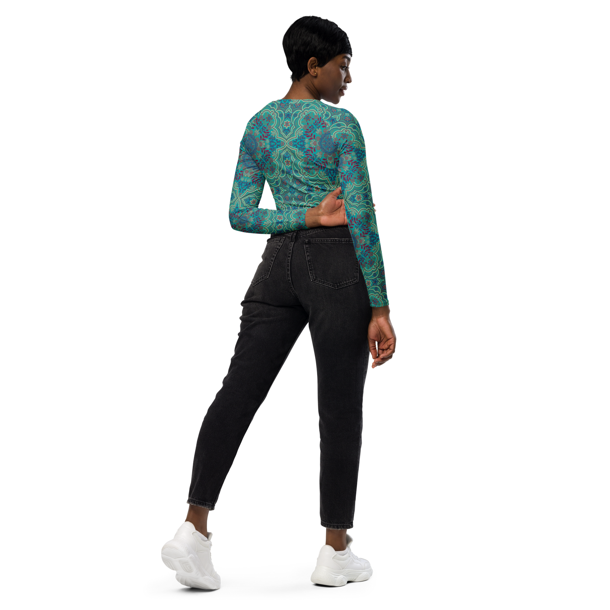 Women's Recycled long-sleeve crop top shirt - Geo Floral